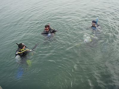 ヨットハーバーに行ってみると、久慈東高校の生徒さんたちが潜水実習をしていました。