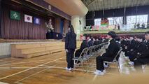 下船式の後、乗船指導教官2名から訓示。ゆるんでいた生徒の顔が再び引き締まりました。