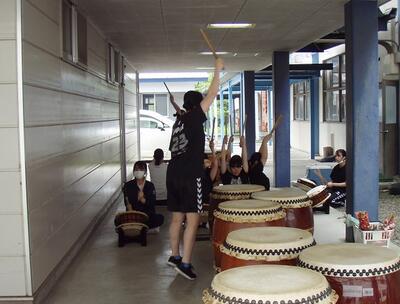 夏休み初日。今日は朝から先生方の研修会。そこに聞こえてくる太鼓部の音がいつもより迫力があるような・・・