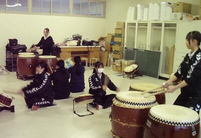 こちら太鼓部、寒さを避けて幾分狭い部屋で活動中。 広さがない分、いつもの何倍もの音の勢いが体中に響きました。