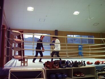 外の寒さもなんのその。スパーリングにサンドバッグ、当たり前に練習が繰り広げられていました。
