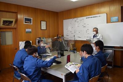 岩手県水産技術センターに到着したら、まずは淡水(内水面)養殖のレクチャーです。
