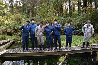 海洋生産科2年生食品資源コースの面々、一昨日八幡平市の岩手県内水面水産技術センターでの現場実習に行ってきました。食品資源コースでは本BLGでも時々紹介する「缶詰実習」など食品製造実習を行うと共に、山田実習場でカキやホタテの海面養殖、そして、淡水魚の養殖では校内で金魚の養殖と今回のように八幡平市まで出かけてサクラマスやイワナなどの養殖現場実習を行っています。 魚を生産し(養殖)→食品に加工し→パッケージや販売方法も考えて→商品化 という 6次産業の流れを勉強しています。